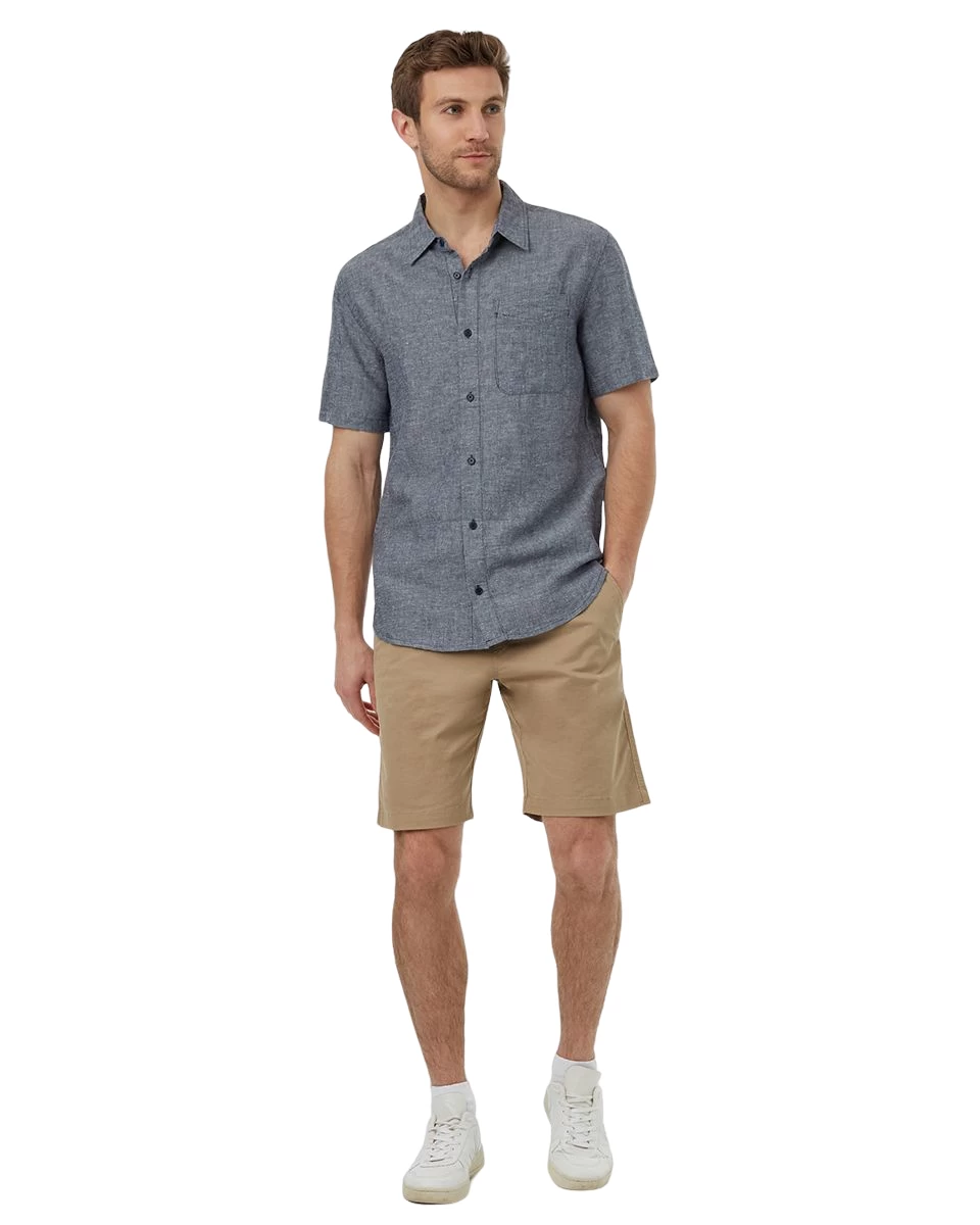 Tentree Hemp Button Front Shortsleeve Shirt (Dress Blue)